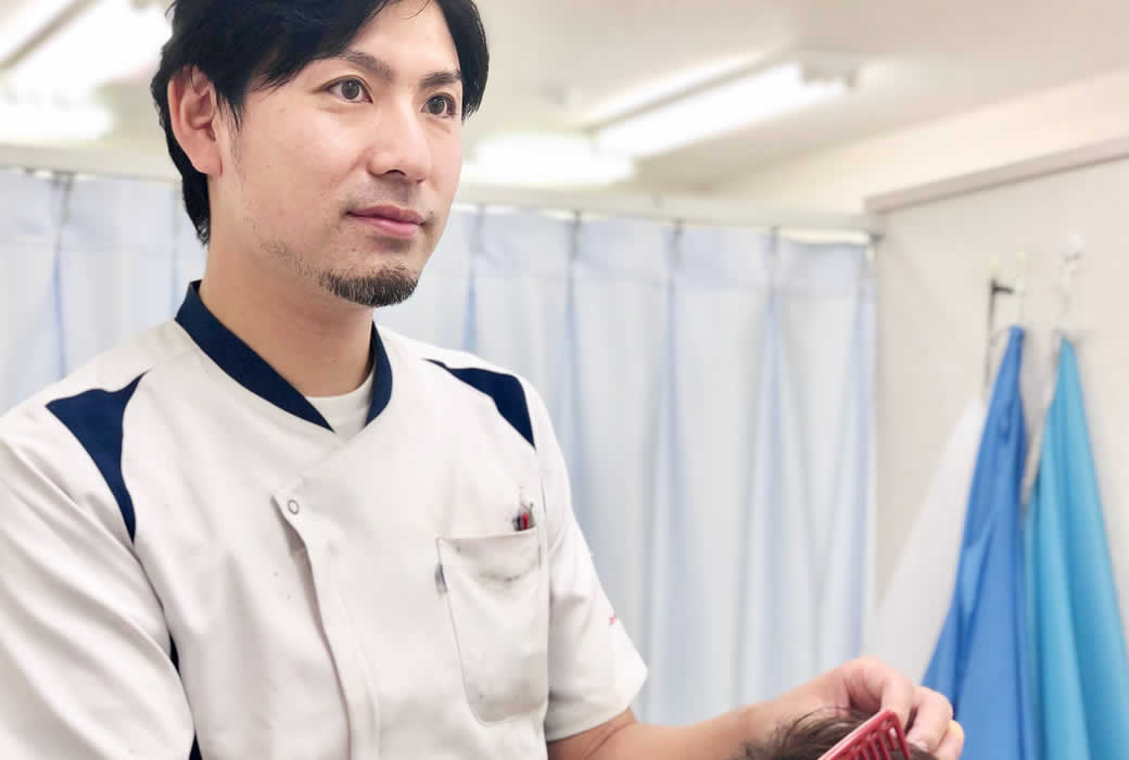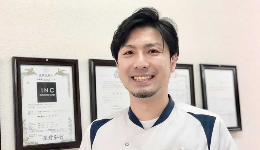 僕は新卒で大手毛髪メーカーに入社し、14~5年勤めていました。理美容の資格も入社後に取ったんです。その後一度は違う仕事をしたくて業界を離れたんですが、やっぱりもう一度ハサミを持ちたいな、と考えていた時に縁があってインクリーズヘアーに入社しました。それからは各地の店舗を回りつつ、博多と中野店では店長も兼任させてもらっています。